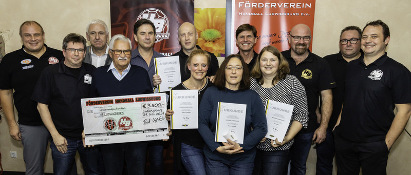 Auch in diesem Jahr hat der Förderverein Handball Ludwigsburg e.V. eine stattliche Summe zusammengebracht. Für die Saison 2019/2020 konnte im Vergleich zu den Vorjahren nochmals 500 Euro oben drauf gepackt werden. Die Vorstände Thilo Kapfenstein und Jochen Schildknecht überreichten stellvertretend für alle Mitglieder des Fördervereins den SG-Leitern Andre Zwirner, Dirk Reyle, Olaf Iglesias und Reiner Käss einen symbolischen Scheck über 3.500 Euro