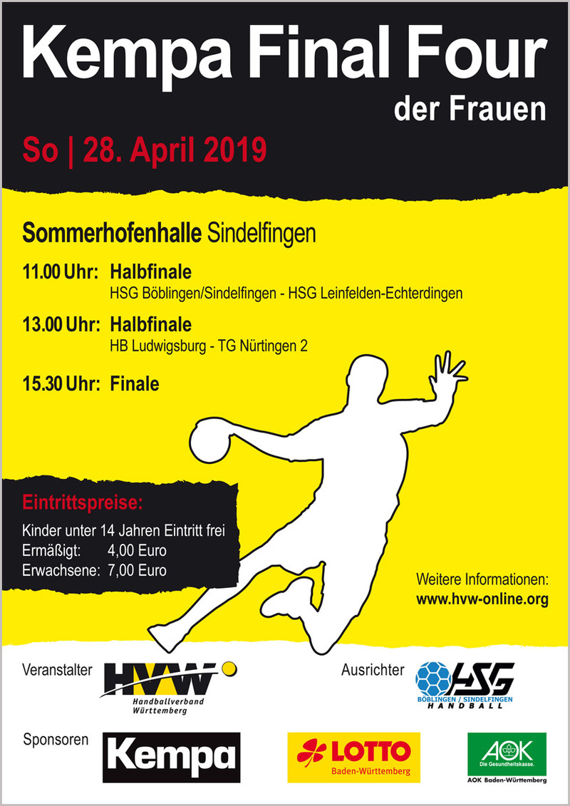 Am Sonntag, 28. April 2019 findet das Kempa Final Four der Frauen in der Sommerhofenhalle in Sindelfingen stattfinden.