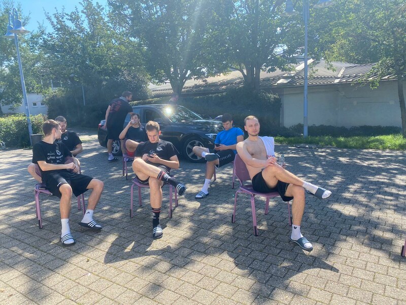 (JL) Pflugfelden statt Frankreich, Hygienebestimmungen statt Übernachten auf Feldbetten. Anders als im letzten Jahr fand dieses Jahr das Trainingslager der Männer 2 in der Heimat und damit nicht im Nachbarland Frankreich statt. Stattdessen traf sich das Team um Trainer Andy Wolf am Samstagmorgen um 09:00 in der Pflugfelder Sporthalle. Den Startschuss stellte eine Runde gemütliches Joggen bei strahlender Morgensonne, gefolgt von einem gemeinsamen Frühstück dar. In der ersten handballerischen Einheit stellte der Coach dann gleich sicher, dass auch wirklich jeder am nächsten Tag seine Beine spüren wird. Auf dem Plan stand nämlich das Trainieren der Zweiten Welle! Einheit Zwei hatte dann das Ziel im Anschluss an das Mittagessen, verschiedene Auslösehandlungen einzutrainieren. Diese wurden dann anschließend in der dritten Einheit im Spiel gegeneinander unter Realbedingungen getestet. Etwas erschöpft, aber bestens gelaunt ging es dann sehr zügig in die Abendgestaltung über, bei der lecker Grillen und lustige Gespräche den Tag perfekt abrundeten.