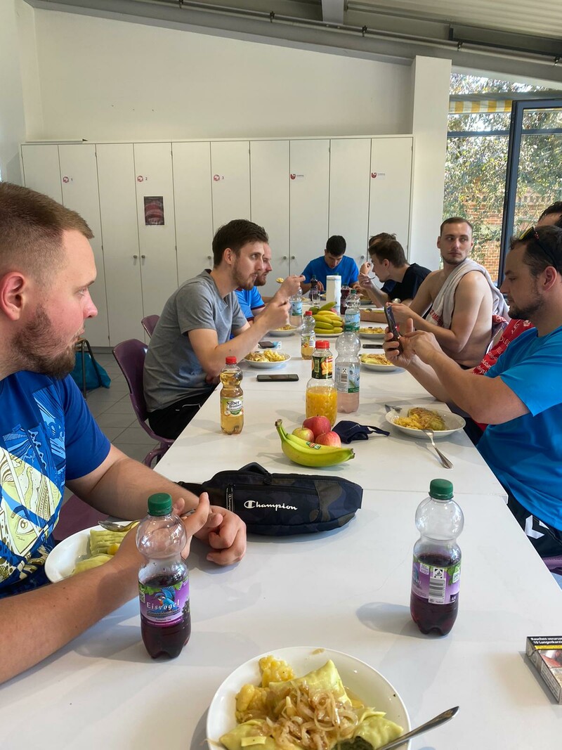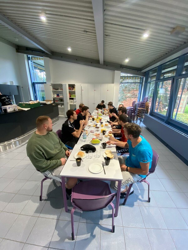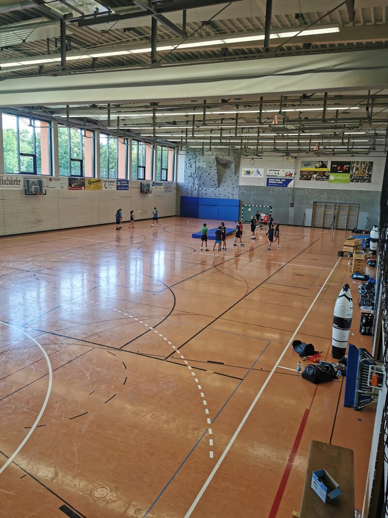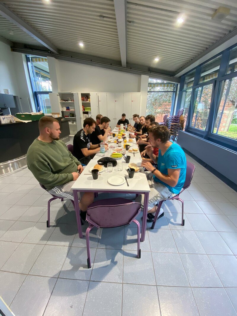 Nach und nach war durch die Lockerungen der Corona-Vorgaben auch im Trainingsbetrieb immer mehr möglich. Man durfte wieder als gesamte Mannschaft zusammen trainieren, die Halle musste nicht mehr aufgeteilt werden, nur die Anwesenheit von Desinfektionsmittel war immer noch genauso wichtig wie das Harz. Doch mit den Möglichkeiten, die durch die neuen Regularien ergaben, konnte Trainer Michael Walter jetzt ohne Einschränkungen trainieren und dann, Mitte August, standen auf einmal schon die ersten Trainingsspiele an, sowohl gegen die M2 aus dem eigenen Verein, als auch gegen auswärtige Mannschaften wie der SKV Oberstenfeld. Ziel in diesen ersten Wochen und Monaten war es für Trainer und Team erstmal eine vernünftige und stabile Abwehr aufs Parkett zu stellen, alle Abläufe und Taktikvorgaben zu verinnerlichen und als Team auf der Platte zusammen zu finden. Ein Trainingslager sollte diesen Prozess unterstützen und so igelte sich die Mannschaft Ende August in der Sporthalle Pflugfelden ein, um hier ein intensives Trainingsprogramm zu absolvieren. Den Rahmen bildeten an diesem Wochenende Trainingsspiele, dazwischen standen verschiedene praktische und theoretische Trainingseinheiten auf dem Plan, um den 100% immer ein Stückchen näher zu kommen.