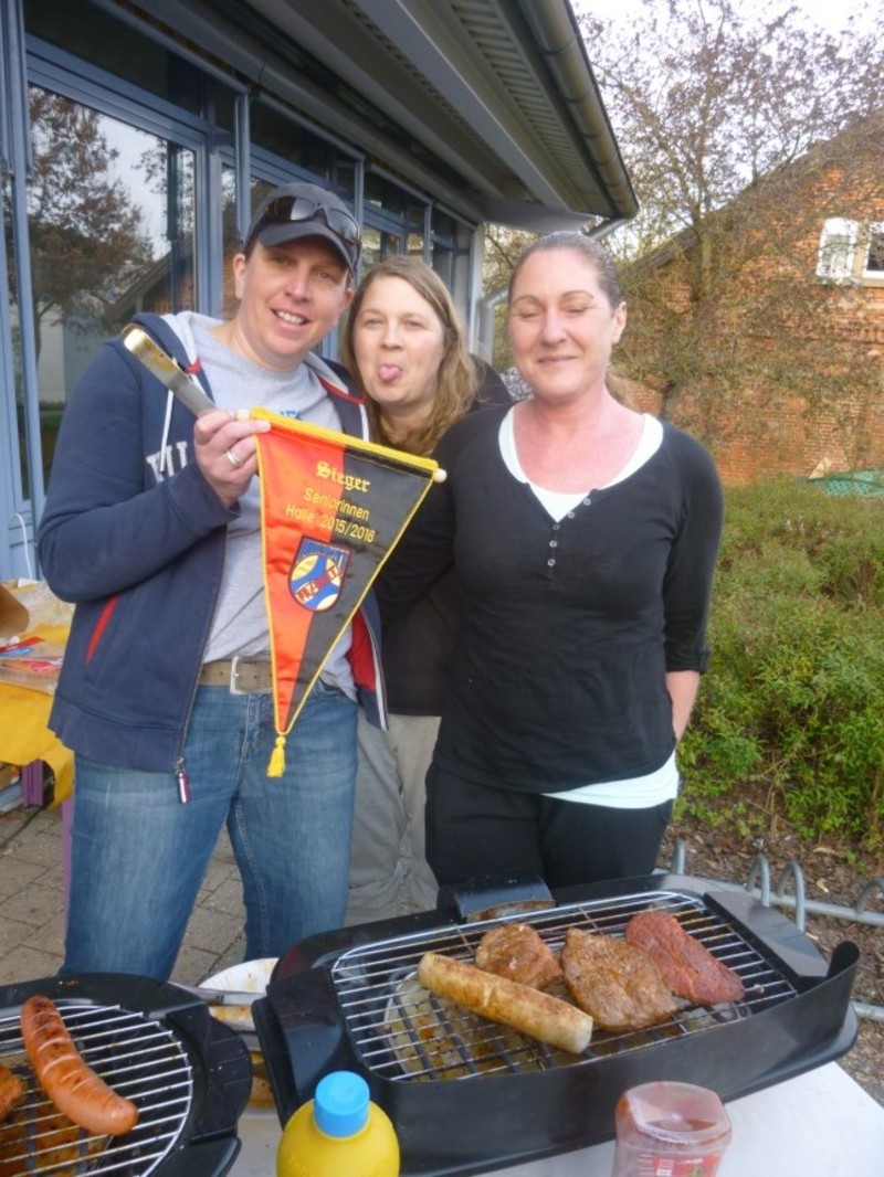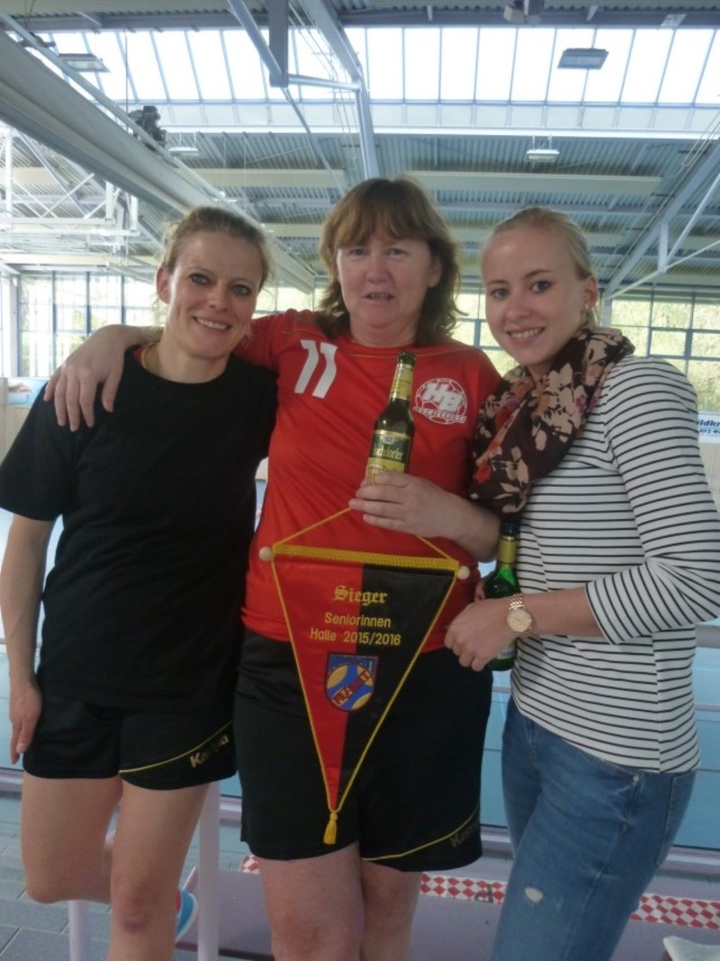 Durch ein Losverfahren durfte man im Halbfinale gegen den Tabellenzweiten der Staffel 1, der SG BBM Bietigheim antreten. Das Spiel stand lang auf der Kippe und die „alten Dämchen“ mussten nach einem zwischenzeitlichen 9:9-Endstand sogar in die Verlängerung. Das spannende Match konnten sie dann mit 14:10 für sich entscheiden und standen so im Finale gegen die HSG Steinheim/Kleinbottwar. Und auch dort überzeugen die HBL-Senis durch mannschaftliche Geschlossenheit und Siegeswillen und gewannen mit 16:12. Ein weiterer „Bembl“ darf sich jetzt also in Pflugfelden zuhause fühlen. Nach der Siegerehrung wurde noch kräftig gefeiert… und schon sind wir gedanklich in der Vorbereitung für die neue Saison 2016/2017 … is klar, neh? ;-)