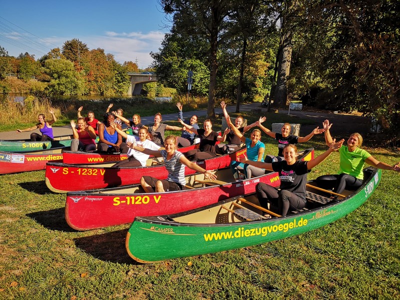 Am Nachmittag und Abend stand dann der Teambulding Teil auf dem Programm. Nach dem einchecken in die Jugendherberge in Schlösslesfeld und dem Beziehen des Nachtquartiers ging es ab runter an den Neckar. Dort warteten sechs Kanus darauf, von 2er und 3er Teams ins Wasser gelassen zu werden. Wer dachte, dass wir nur gediegen über den Neckar schippern und wohlmöglich trocken bleiben würden, lag eindeutig falsch. Nach einer kurzen Phase des Eingewöhnens an das neue Gefährt begannen wir eine Reihe von Spielen. Es galt schnellst möglich eine Quitscheente über den Fluss und zurück zu bekommen, den Ball beim Wasserpolo so lange wie möglich zu sichern und zum richtigen Zeitpunkt in das „Torboot“ zu treffen, sowie so viele Quitscheenten und Co ins eigene Kanu zu befördern. Dem Gewinner des jeweiligen Spieles wurde eine Ladung Neckarwasser ins Gesicht geschaufelt und auch so war in den Spielen so viel Aktion drinnen, dass keiner trocken aus seinem Boot wieder ans Ufer kam.