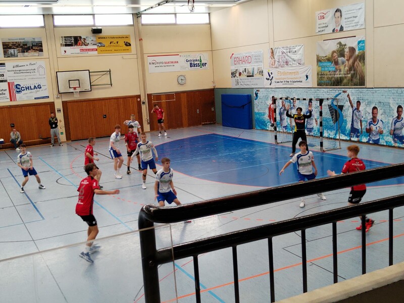 Die HBL Jungs wussten das dies keine leichte Aufgabe werden würde, da einige der Spieler am Vortag bei der mC1 – Jugend als Zuschauer zu Gast waren und die Atmosphäre in der Sporthalle (Hölle-) Ost miterlebt hatten. Dennoch ging man optimistisch in die Partie. Zu Beginn allerdings taten sich die Jungs in Rot sichtlich schwer gegen die gut stehende Kornwestheimer Deckung und auch in der Abwehr mangelte es an Kommunikation. Somit lag man schnell mit 0:3 im Rückstand. Es dauerte 4:30min bis Nils Skalicky das erste Tor für die Ludwigsburger erzielen konnte. Den 3 Tore Rückstand konnten die Ludwigsburger Jungs bis zur 8 Spielminute egalisieren und zogen sogar mit 2 Toren zum Stand von 8:6 davon. Bis zur Halbzeit entwickelte sich ein offener Schlagabtausch und man ging beim Pausenstand von 15:14 für die Kornwestheimer in die Kabine.