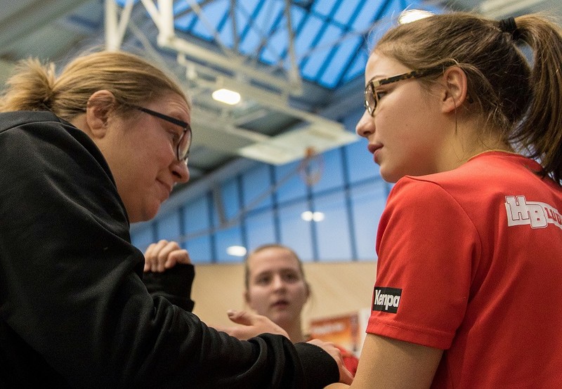 Bereits beim Aufwärmen knickte unsere Torhüterin Kathrin Allhoff so unglücklich um, dass an einen Einsatz für das Spiel nicht zu denken war. Annika Geiger musste sie nun vertreten, fehlte dafür aber am Kreis, so dass das taktische Konzept völlig über den Haufen geworfen werden musste. Jetzt waren unsere Mädchen gefordert - und sie lieferten. Selten zuvor hat diese Mannschaft so füreinander gefightet wie in diesem Spiel. 20 Minuten lang konnten unsere Mädels diesem hervorragend aufgestellten Gegner die Stirn bieten und ihm das eigene Aufbauspiel zunehmend schwer machen.
