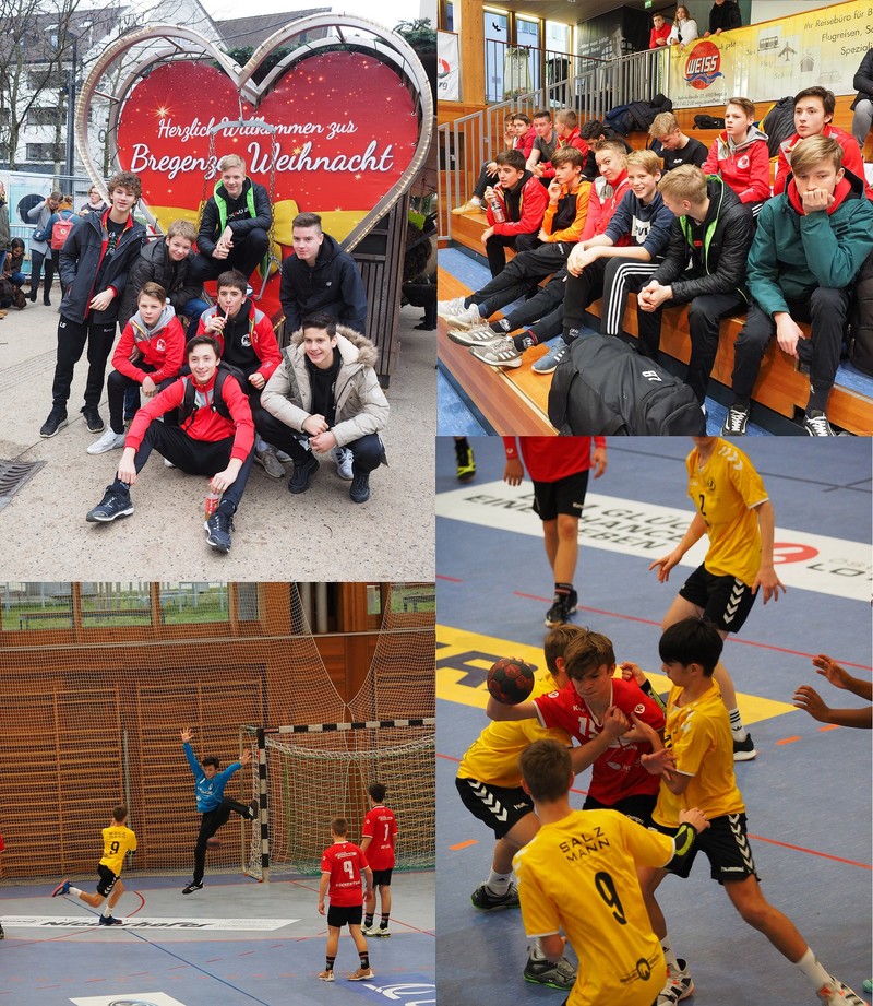 Morgens um 9:30 Uhr trafen sich alle zum gemeinsamen Frühstück. Es folgte noch ein gemeinsamer Spaziergang am See und ein Besuch auf dem Weihnachtsmarkt. Gut gelaunt ging es zur Bregenzer Halle. Das Spiel konnte beginnen. Leider fehlte Linus bei diesem Spiel, da er sich eine Gehirnerschütterung gegen die HSC Schmiden/Oeffingen zuzog. Hochmotiviert gingen die Jungs ins Spiel. Leider musste Phil früh verletzt vom Platz. Bis zur 35. Minute sah es gut für die „Mad Boys“ aus. Dann schlug die Stunde des Mannes in Schwarz. Auf Zuruf eines Bregenzer Spielers, dass unser Tom durch den Anspielkreis gelaufen und abgeworfen wurden wäre, gab der Schiri unserem Spieler eine zwei Minuten Strafe. Danke hierfür!