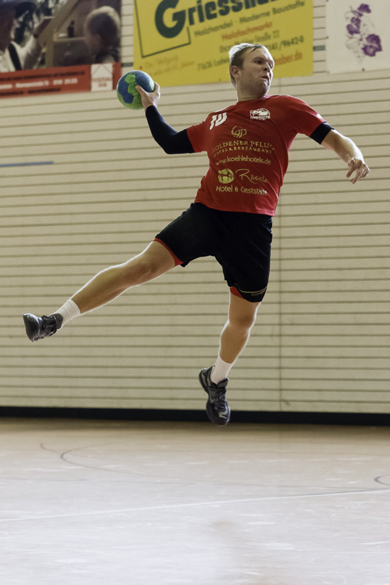 Kapitän O. Cicione schwor die Mannschaft vor dem Spiel noch entsprechend ein, jedoch verlief der Start in die Partie dann doch etwas schleppend und vor allem im Angriff wurden in der ersten 15 Minuten reihenweise 100% Chancen leichtfertig liegen gelassen. Aber auch die Gegner taten sich im Angriff schwer, was mit an der kompakten Abwehr der Hausherren und an dem starken aufgelegten Torhüter M. Rettig lag. So zeigte die Anzeigentafel nach 15 Minuten ein mageres 5:5. Im Laufe der ersten Halbzeit kam das Angriffsspiel der HBL immer mehr in Schwung und man konnte die Führung bis zur Halbzeitpause auf 14:11 ausbauen.