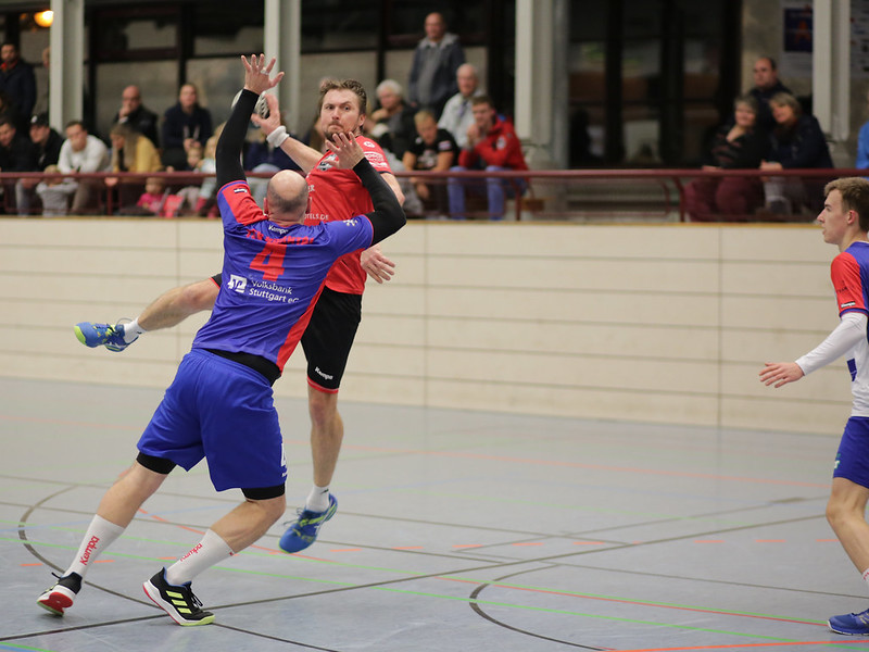 (JL) Nach sechs Siegen aus den letzten sechs Spielen gingen die Männer 2 am späten Samstagnachmittag mit einer ordentlichen Portion Selbstvertrauen in die Partie gegen die SG BBM 3. Dementsprechend gut ging das Spitzenspiel der Bezirksklasse für die Mannschaft von Andy Wolf auch los. Allerdings folgte in Pflugfelden auf ein schnelles 4:1 ein genauso schnelles 5:9 für die Gäste nach 15 Minuten. Mit einem 15:16 ging es dann in die Halbzeitpause, somit war die Partie vollkommen offen.